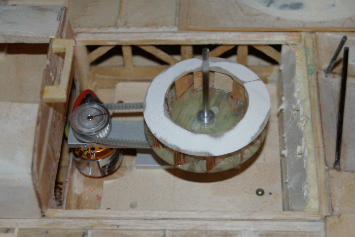 | Angetrieben wird das Radialgebläse mit einem Turnigy TR 35-36B 1300kv Brushless Outrunner über ein Zahnriemengetriebe mit einer 40:28 Untersetzung. | Radialimpeller mit Angetrieb |